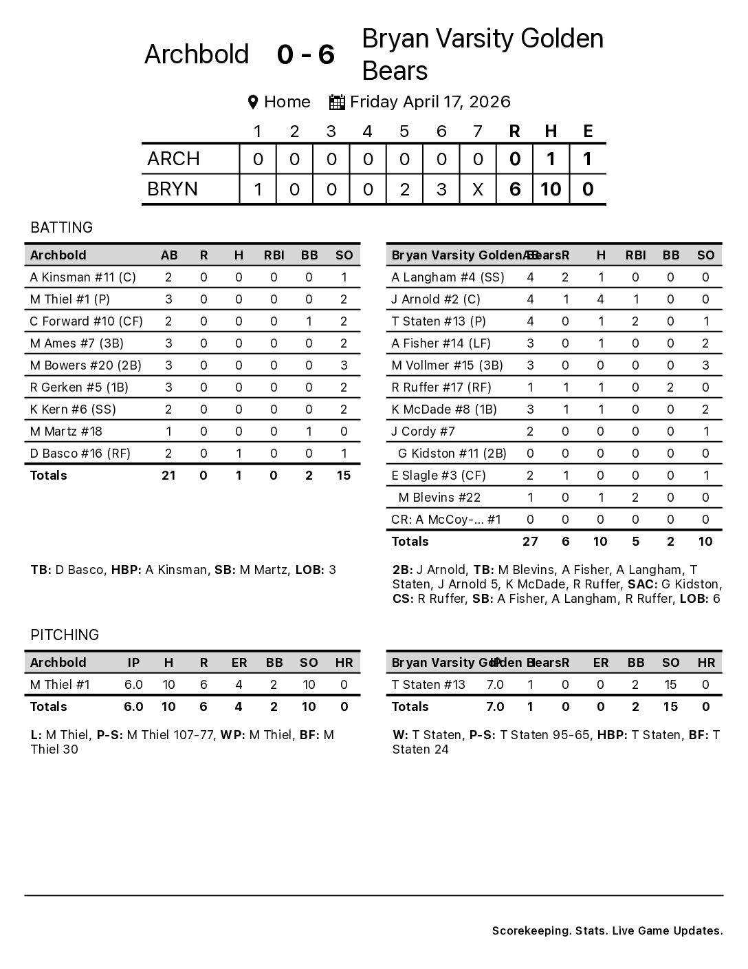The Bryan Boys Tennis traveled to Oak Harbor on Friday afternoon and earned a 5-0 victory. The Golden Bears are currently riding a 5-game win streak after losing their first two matches of the season. Nolan Franzdorf fought hard in three long sets at second singles to secure the team sweep. Individual scores are listed below: